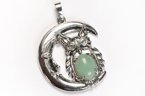 COLGANTES DE MINERALES | COLGANTE BUHO EN LUNA CON AVENTURINA 3,3X3,3CM