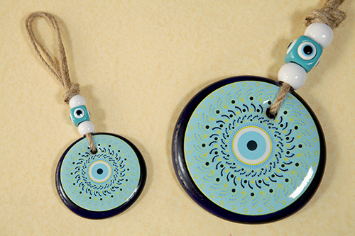 COLGANTE CRISTAL OJO TURCO CON DISEÑO MANDALA 8x23CM